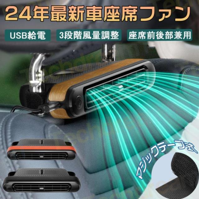 24年新品 車載扇風機 座席ファン 車座席ファン ヘッドレストファン 車用扇風機 USB給電 3階段風量調節 静か 強力 車 扇風機 車載ファン 背中スッキリ 蒸れ解消 空気循環 取付簡単 夏対策 車中泊対策 カー用品 ブラック ブランウ 木目