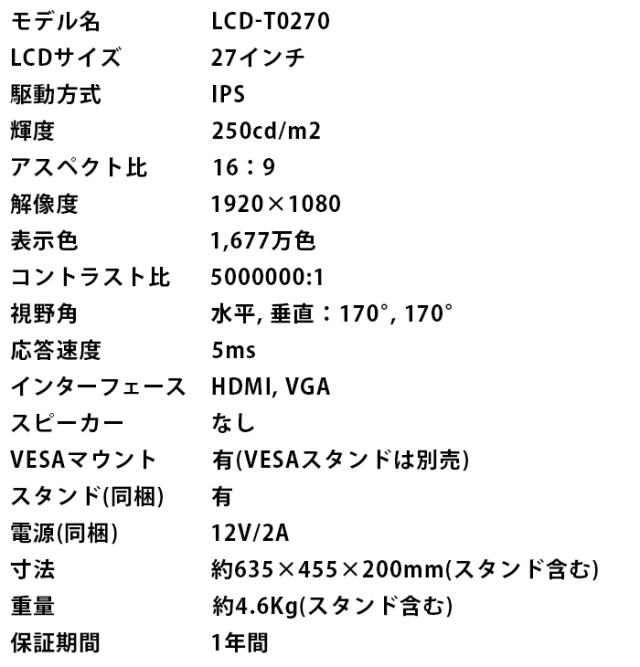 ■ LCD-T0270 スペック