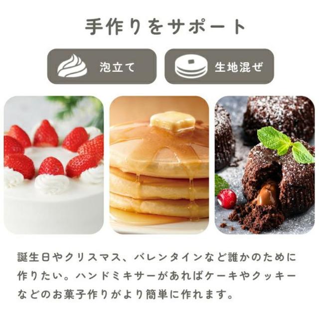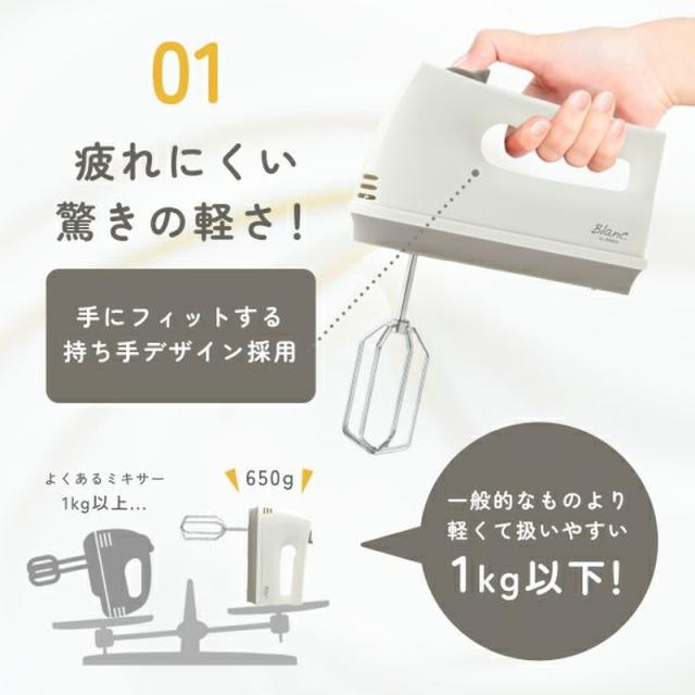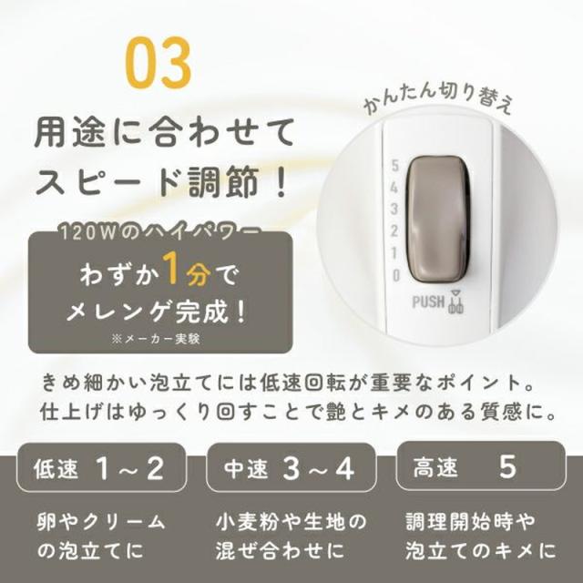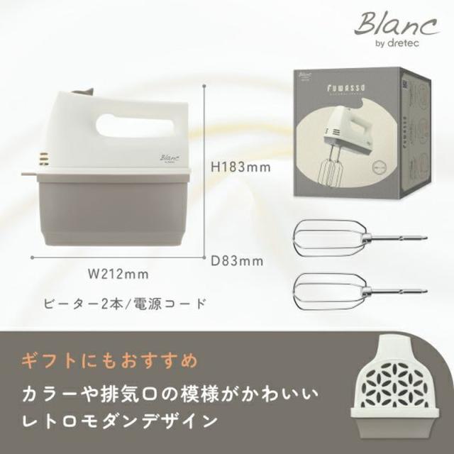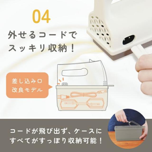 ハンドミキサー 電動 ドリテック HM-709 ホワイトxグレージュ コードが外せる ワンタッチ着脱 スピード5段階調節 自立式