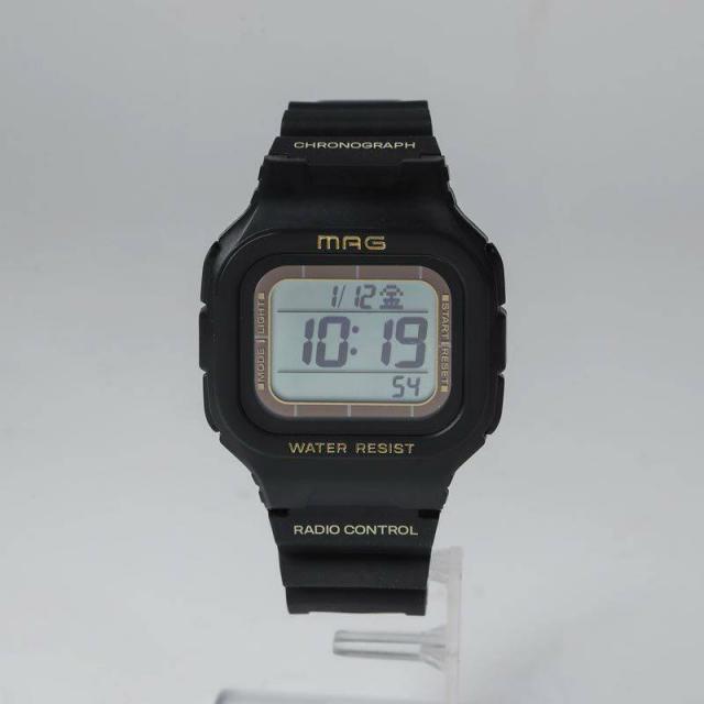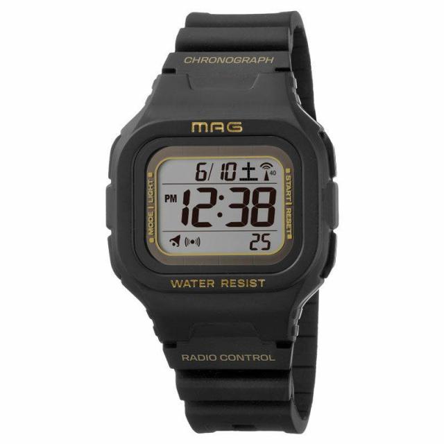腕時計 メンズ 電波ソーラーウォッチ デジタル 10気圧防水 MAG ウエーブフォース ブラック2 ストップウォッチ タイマー機能付き