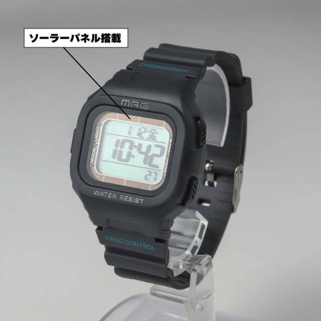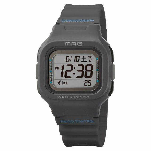 腕時計 メンズ 電波ソーラーウォッチ デジタル 10気圧防水 MAG ウエーブフォース グレー ストップウォッチ タイマー機能付き