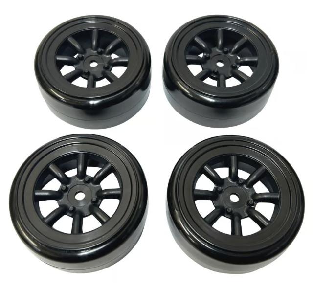 TOPLINE(トップライン) ホイールはめ込み済みドリフトタイヤ(RSワタナベ エイトスポークホイール オフセット2 ブラック) (1台分入)【HD-102BK】ラジコンパーツ 返品種別B