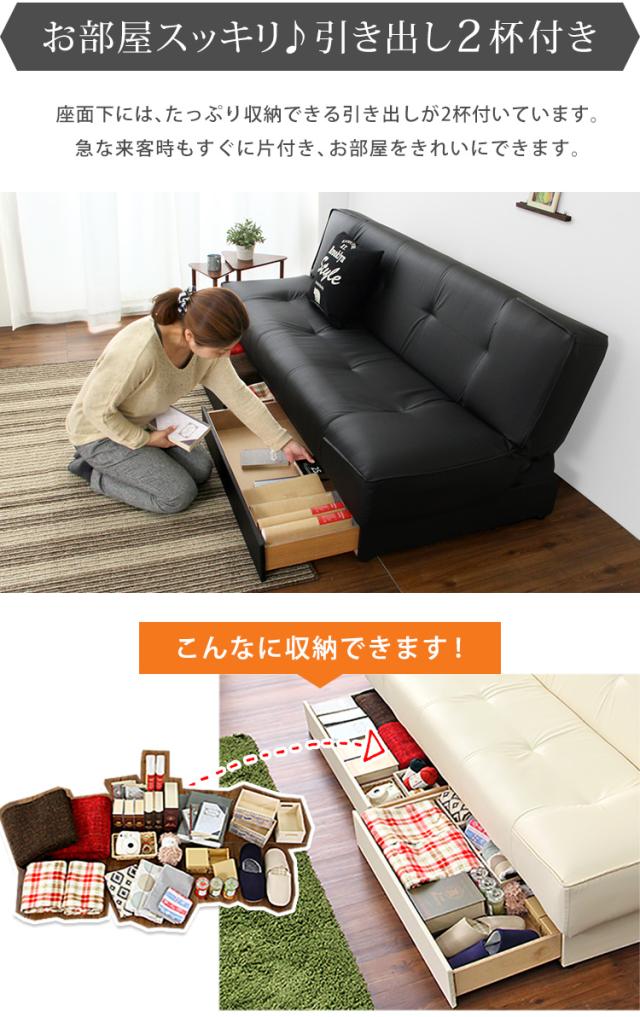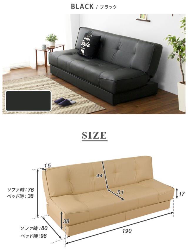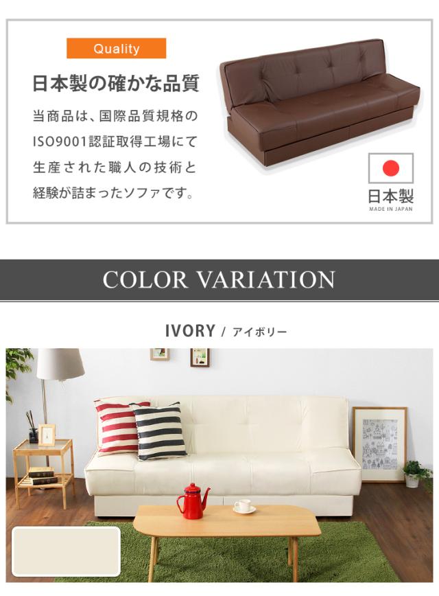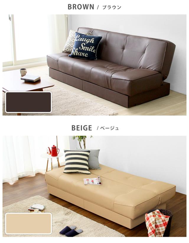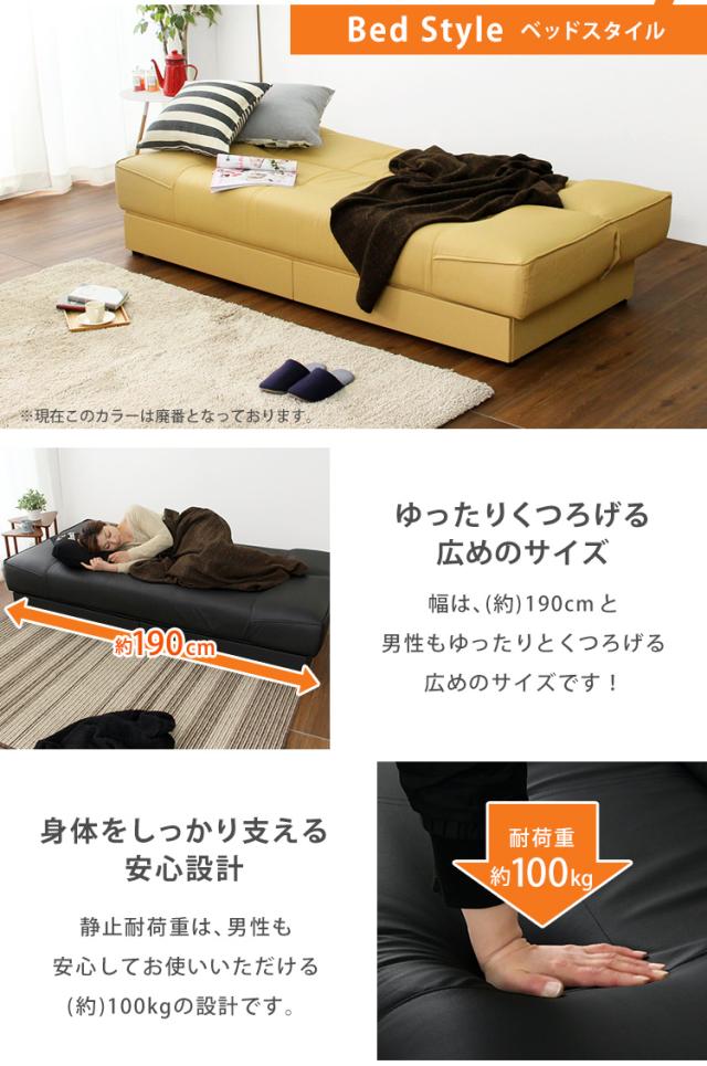 完成品 日本製 ソファベッド ソファーベッド カウチソファ カウチソファー リクライニングソファ ソファ ソファー ベッド 3人掛け 三人掛け 収納 レザー おしゃれ シンプル 硬め 2way Lanaio(ラナイオ) 幅190cm 4色対応