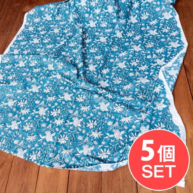 【5個セット】〔1m切単位り売り〕ジャイプル 職人手作り木版染め 色彩美しいボタニカルデザイン おしゃれ 生地 花柄 テーブルクロス 刺繍素材などへ〔幅約112.5cm〕 - ブルー系 / セット、切り売り生地、テーブルクロス、マルチクロス、ボタニカル、プロヴァンス、更紗、量り売り布、アジア布 量り売り、手芸、裁縫、アジアン、ファブリック 布とファブリック 【インドとアジアンの布