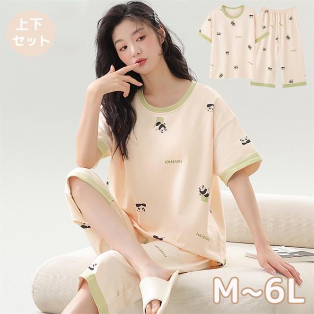 パジャマ レディース 綿 半袖 上下セット ベージュ 部屋着 寝間着 ルームウェア 大きいサイズ 4L 5L 6L ぽっちゃり 春 夏 コットン 可愛い かわいい 薄手 サマーパジャマ ゆったり 女性 リラックス おしゃれ 誕生日 ギフト 結婚祝い プレゼント
