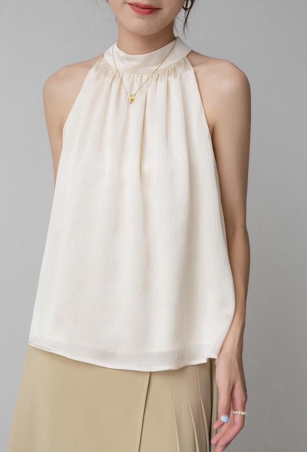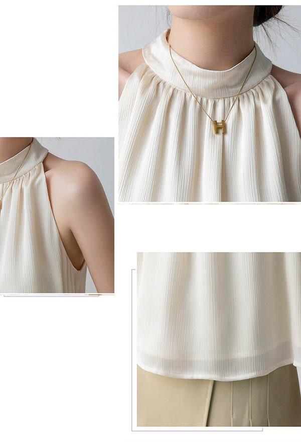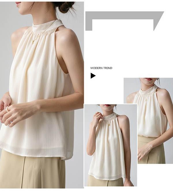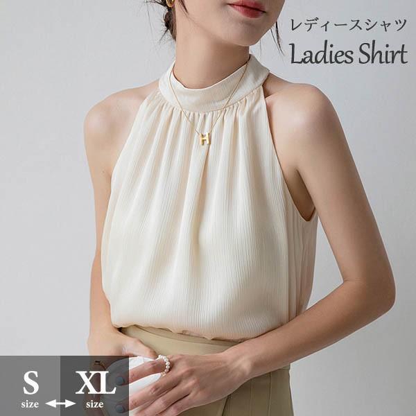 ブラウス レディース シャツ トップス 透け感 ノースリーブ フェミニン セクシー ホルターネック 落ち感 タレ感 ドレープ性高い ストンと落ちる 袖なし サマー 韓国風 シースルー かわいい 夏 涼しい dk158x1x1zb