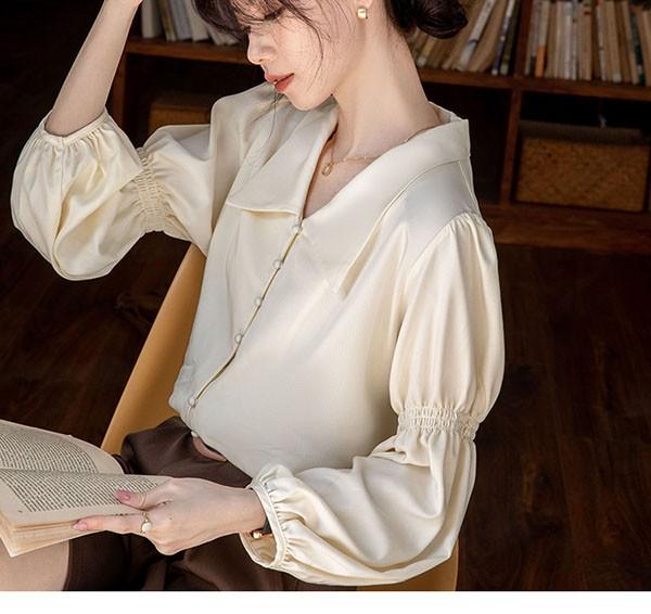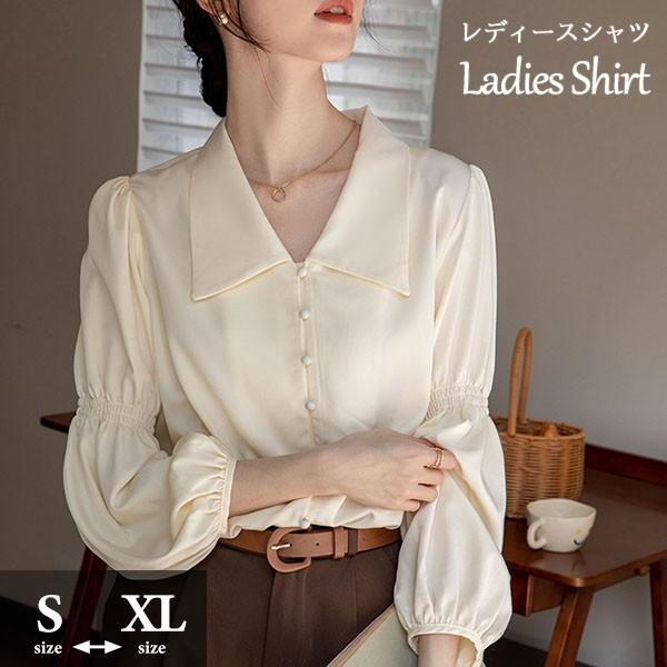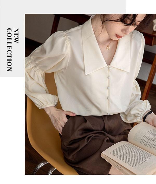 ブラウス レディース シャツ トップス 落ち感 タレ感 ドレープ性高い ストンと落ちる バフスリーブ 長袖あり 袖付き フェミニン セクシー サマー 韓国風 おしゃれ 夏 涼しい ベージュ dk153x1x1zb