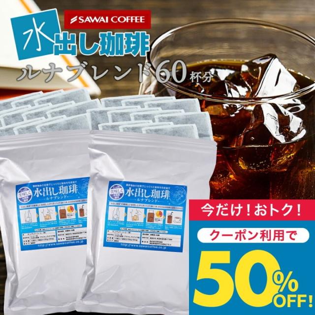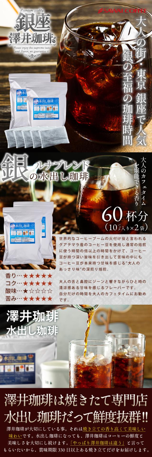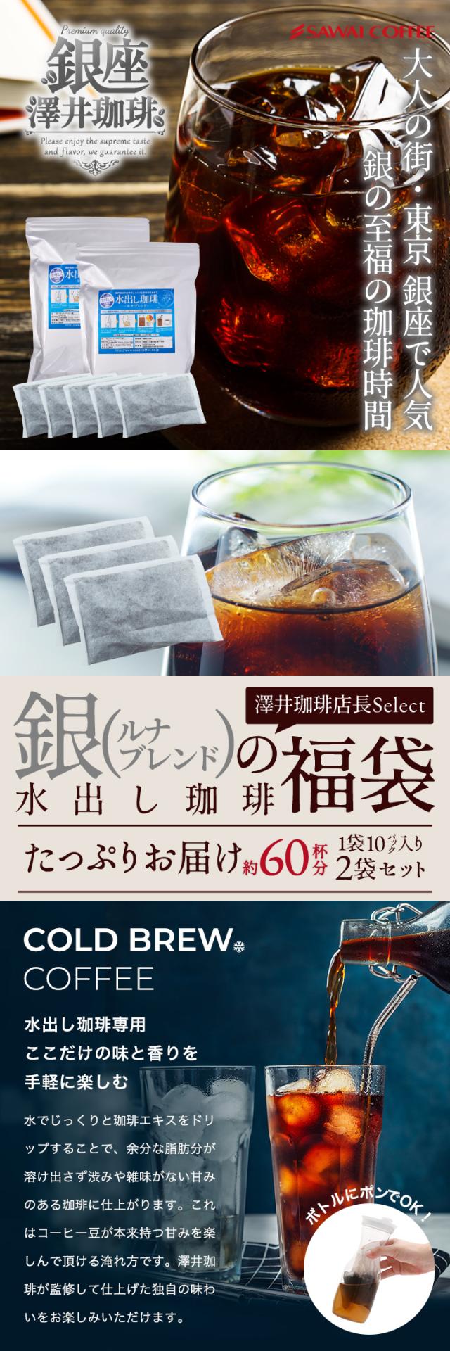 銀の水出し珈琲 セット ルナブレンド 60杯分 水出しコーヒー 送料無料 アイス コーヒーバッグ コールドブリュー 珈琲 大容量 福袋 10パック×2袋 プレミアム コーヒーパック 澤井珈琲 水だし ルナ アイス珈琲