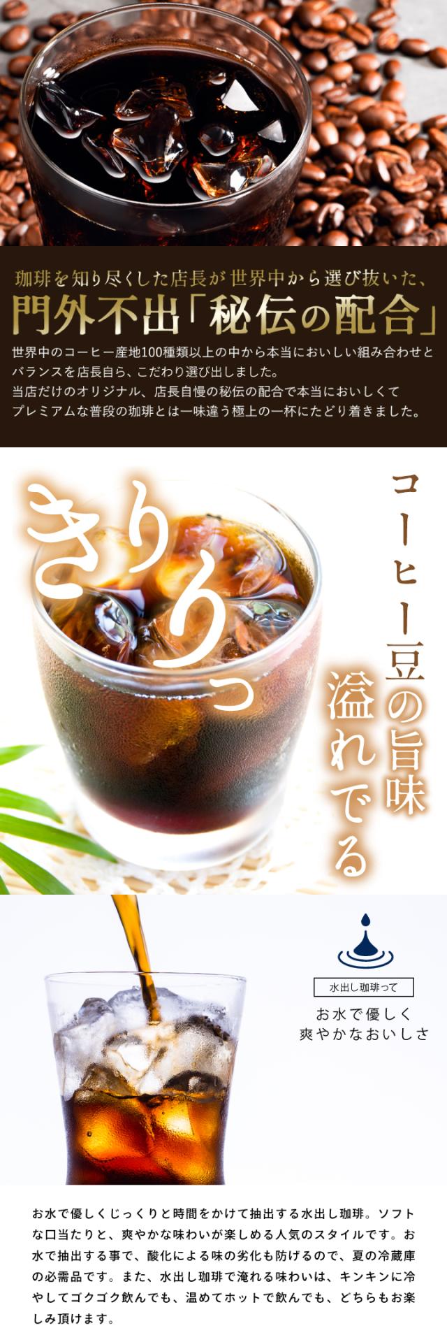 | こんな方にオススメです | 手軽にコーヒーを楽しみたい方:水出し珈琲をボトルにパックを入れてお水を注ぐだけで作ることができます。 コスパを重視する方: 10バッグ入りのパックが2袋入っていて、約60杯分のコーヒーを楽しむことができます |