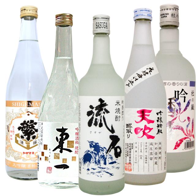 酒粕・米焼酎のみくらべ5本セット/流石 吟香露 天吹吟醸粕取り焼酎 繁桝大吟醸酒粕焼酎 東一 720ml