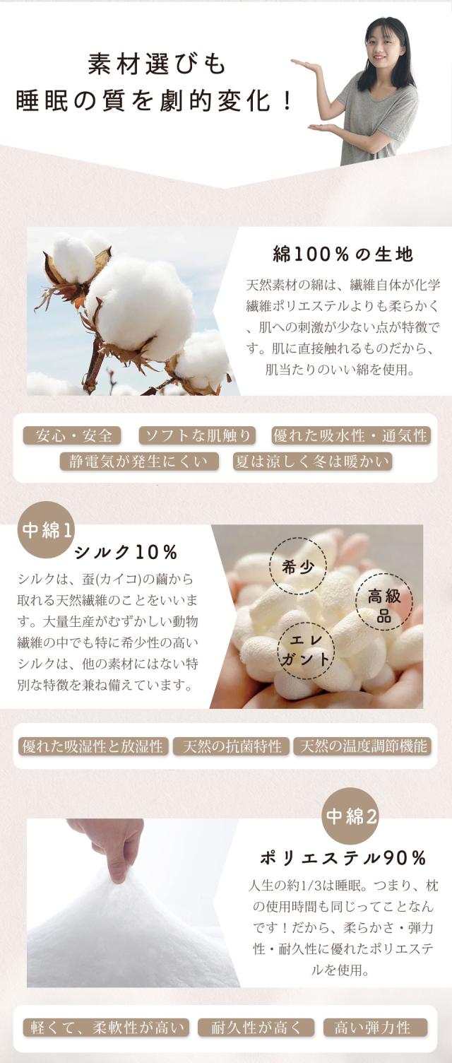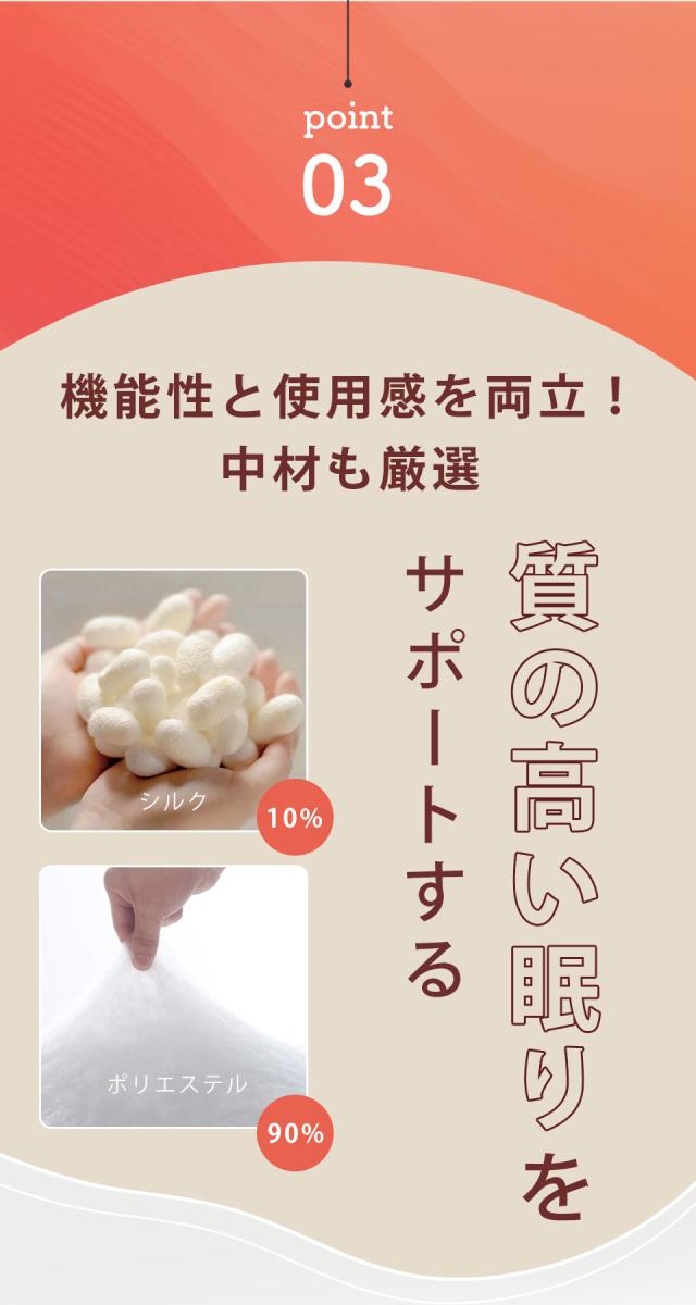詰め物:1シルク10% + ポリエステル90% 詰め量:800g