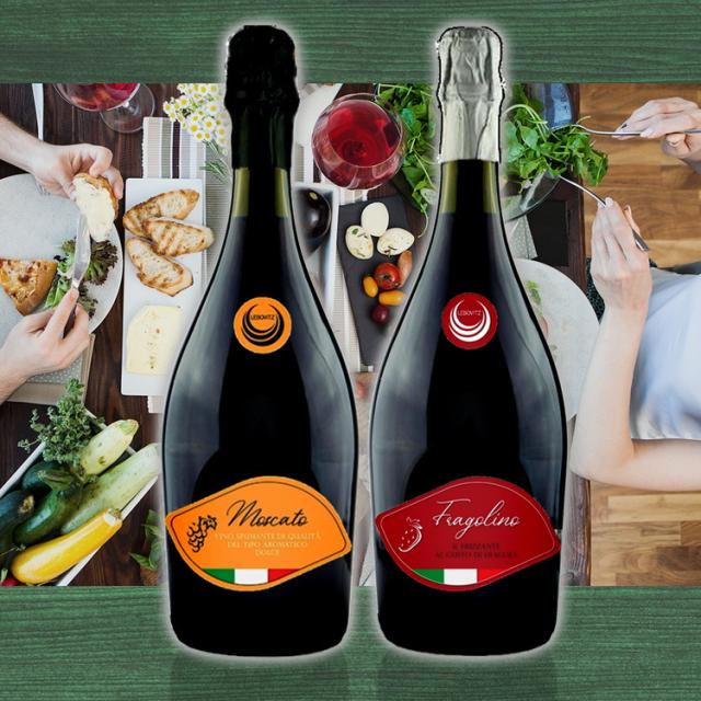 これからワインデビューされる方やパーティに最適!甘口スパーク紅白セットランブルスコの実力生産者、「レボヴィッツ」が手掛ける、天然いちご香料を加えた微発泡ワインとマスカット種から造られた甘口スパークリングワインのセット。