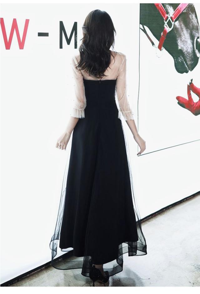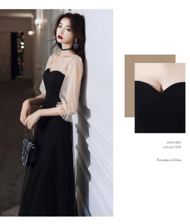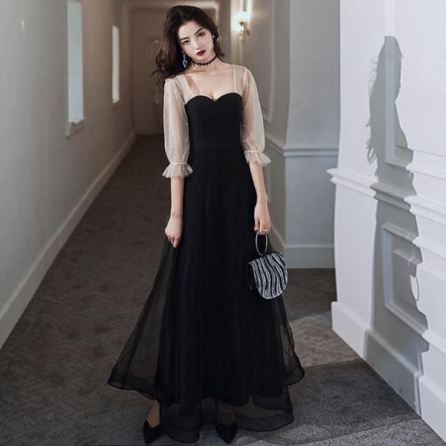 Aラインドレス 夏新品 お姫系 長袖 ブラック 忘年会 イブニングドレス お洒落 演奏会 エレガント 着?せ 気品 ロングドレス 結婚式 パーティー 成人式
