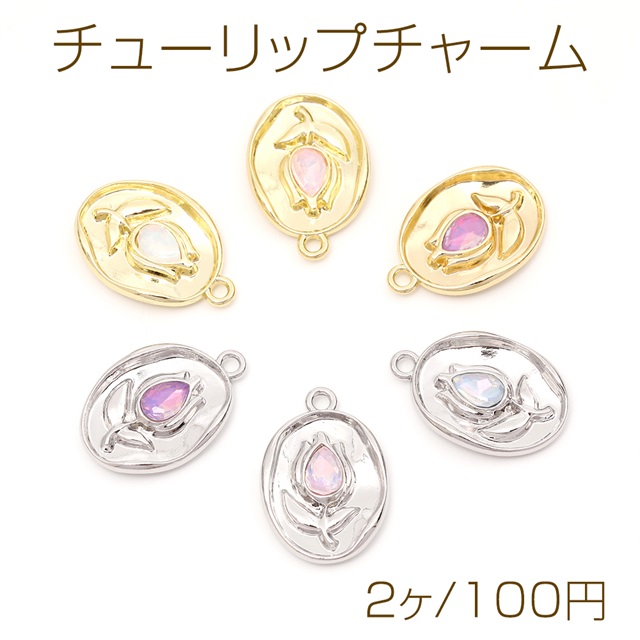 チューリップチャーム フラワーチャーム オーバルチャーム ラインストーン付き 1カン付き 約14×21mm(2ヶ)