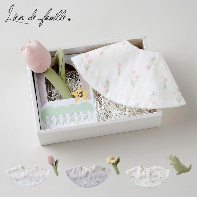 スタイ ラトル 3点セット ギフトボックス入り 男の子 女の子 出産祝い Lien de famille リヤンドファミーユ k55-071 スタイセット 花柄 チューリップ