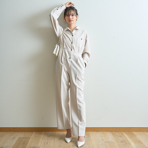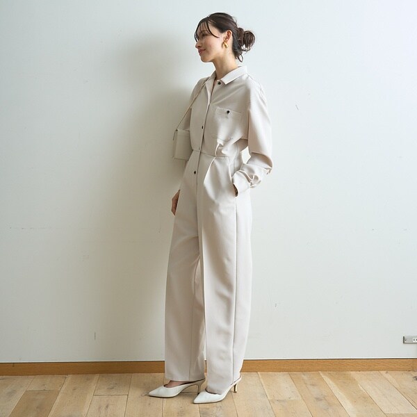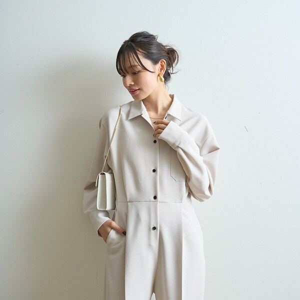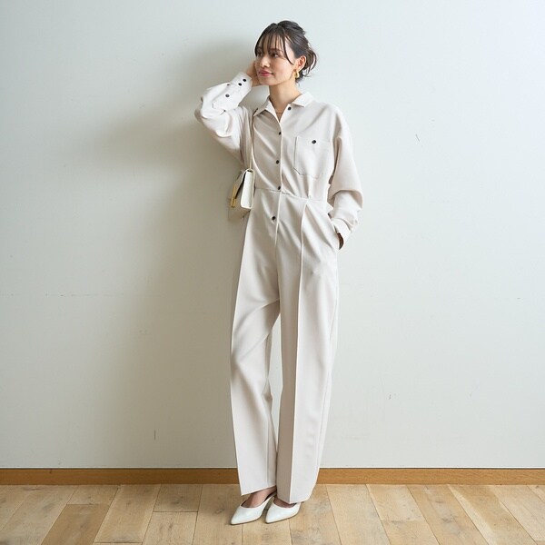 一枚で雰囲気が出る、大人素材のジャンプスーツ。