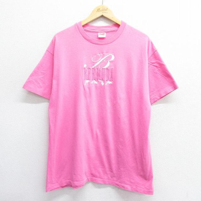 【商品名】 XL★古着 半袖 ビンテージ Tシャツ メンズ 90年代 90s セントジョン 魚 刺繍 ロング丈 大きいサイズ コットン クルーネック USA製 ピンク