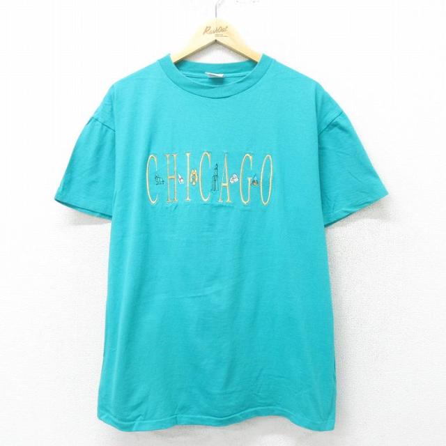 古着 半袖 ビンテージ Tシャツ メンズ 90年代 90s セントジョン 魚 刺繍 ロング丈 大きいサイズ コットン クルーネック USA製 中古 古着