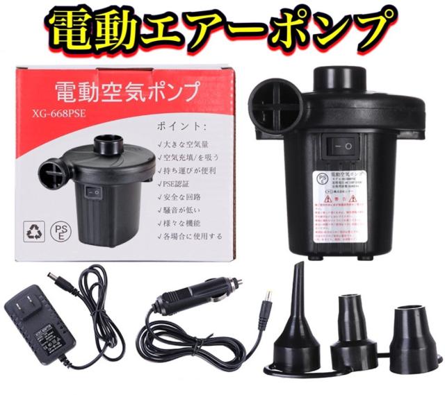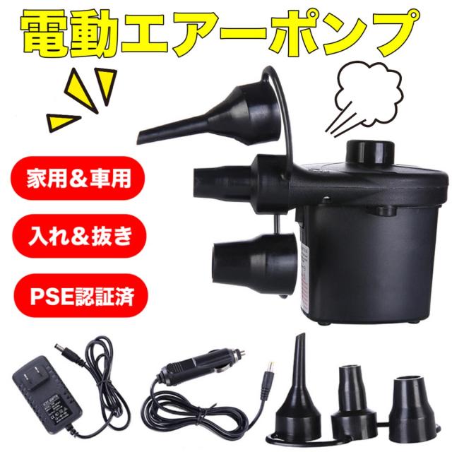 エアーポンプ 電動エアーポンプ PSE認証済み 空気入れ 空気抜き 電動ポンプ コンセント式 AC電源 ノズル3種付き エレクトリ 50W 手持ちポンプ 小型