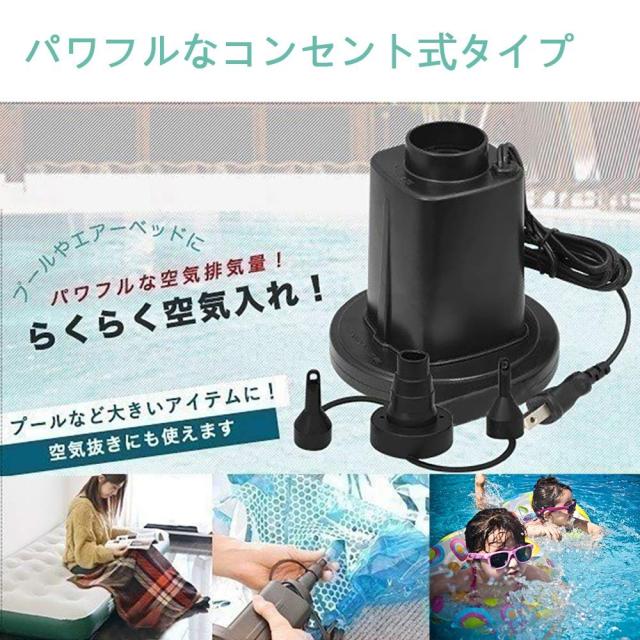 空気入れ&空気抜き両対応!パワフルなコンセント式タイプ! 大きなプールやエアーベッド