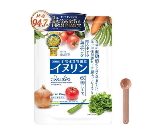 [にんにく玉本舗] イヌリン パウダー 水溶性 食物繊維 標準サイズ 1KG モンドセレクション最高金賞 4年連続受賞 機能性表示食品