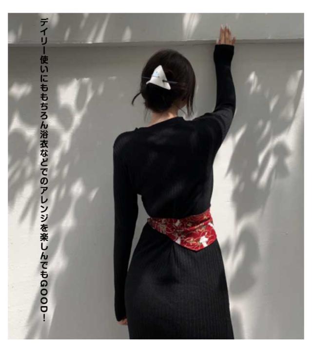 | 和柄が全体に施されたサッシュベルト。 デイリー使いにももちろん浴衣などでのアレンジを楽しんでもGOOD! よさこい衣装やダンス衣装に合わせて、ウエストベルトとしてもオシャレな印象に。 エレガントやシックなコーデにももちろん、シンプルコーデのちょっとしたアクセントにも大活躍。 トップスのカラーと揃えてさりげなくトレンドを取り入れるのがオススメです 普段着コーデに取り入れてみるのもOK。スタイルアップ効果も抜群。 | |