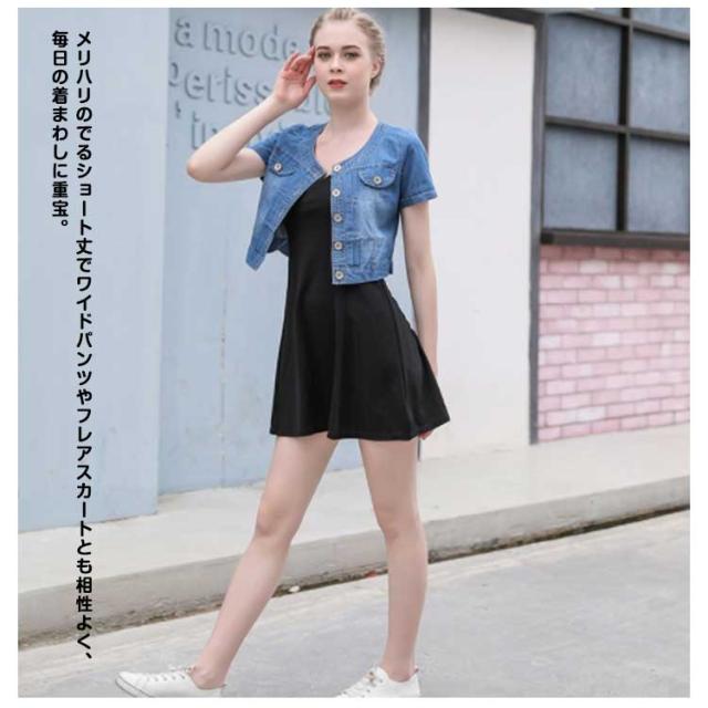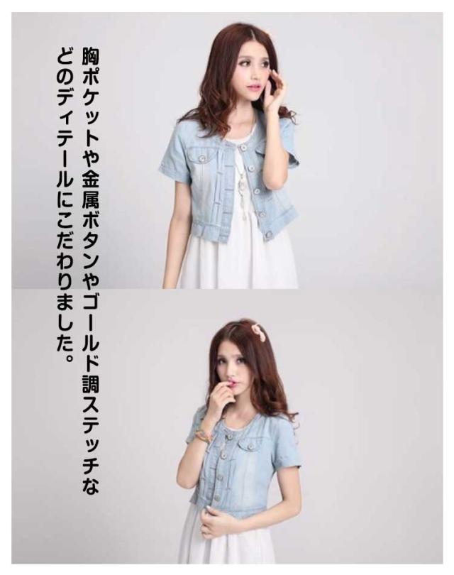 デニムジャケット レディース ノーカラー デニム ジャケット S ショート丈 ショートジャケット 半袖 Gジャン ライトブルー L デニムボレロ ビンテージ 大きいサイズ M 5XL XL 2XL 3XL 4XL 半袖デニムジャケット