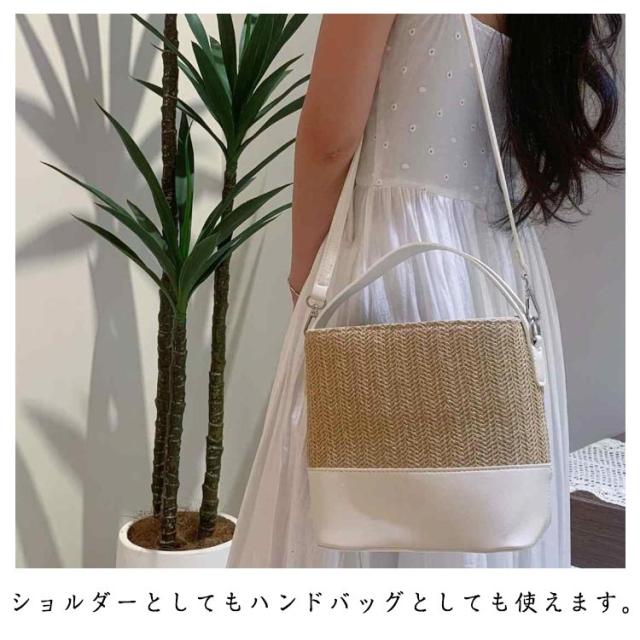 おしゃれ レディース ショルダーバッグ 異素材 浴衣 かごバッグ 2way ストローバッグ かわいい 自立 大人 レディース 鞄 夏バッグ ストラップ付き 編みこみバッグ 籠バッグ トート 浴衣 軽量 誕生日 肩掛け