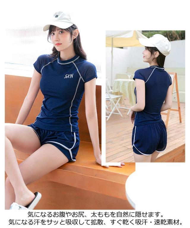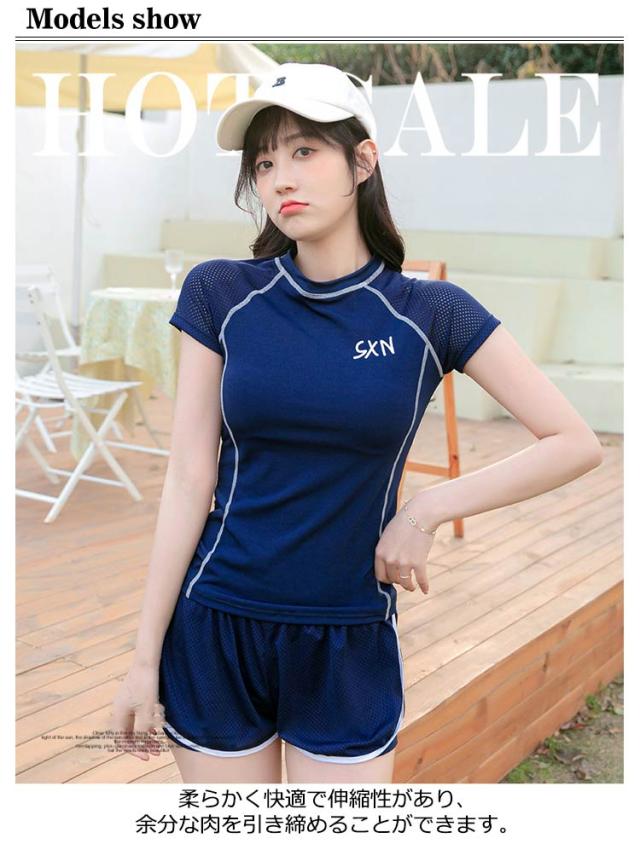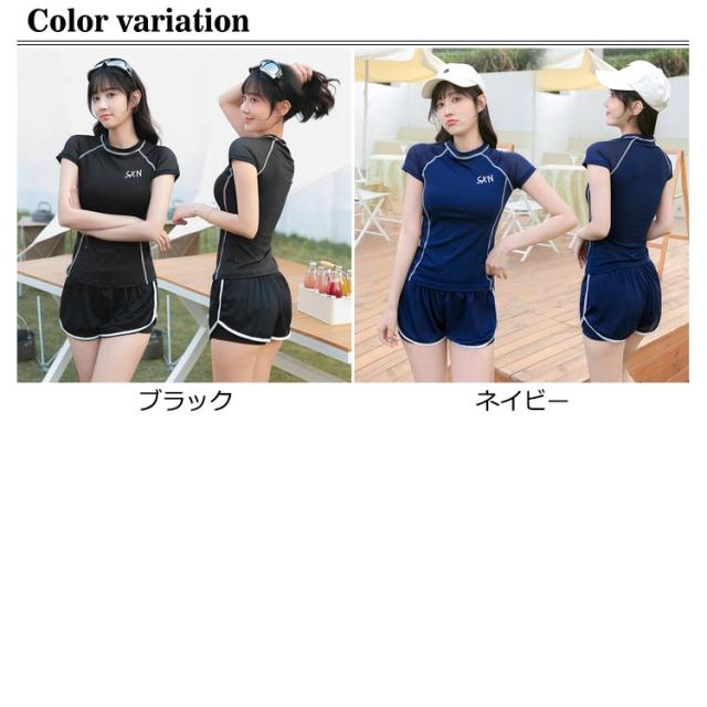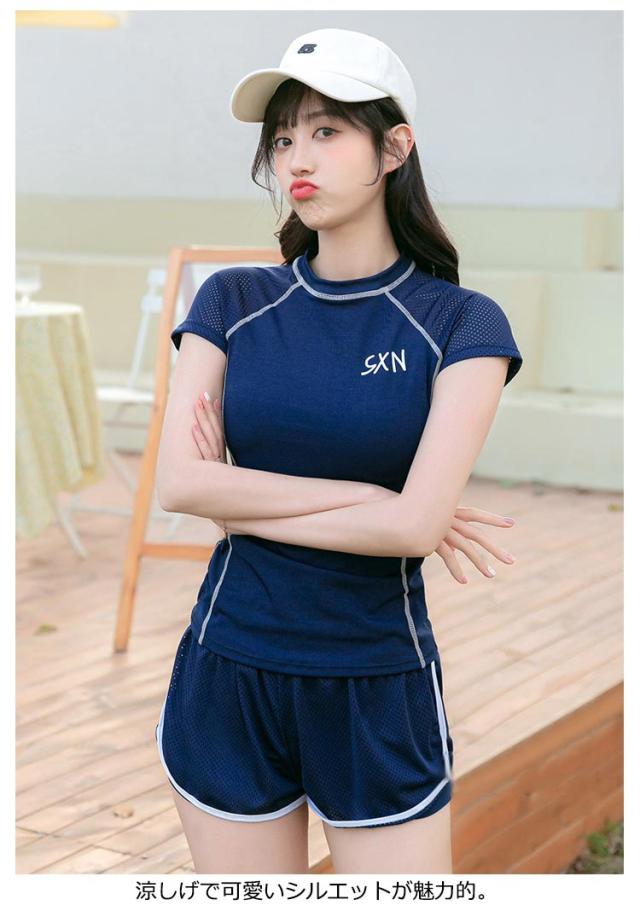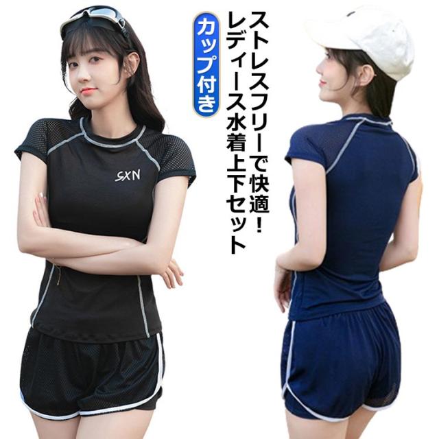 女の子 紫外線対策 上下セット セパレート 中学生 水着 2点セット tシャツ ショートパンツ 半袖 高校生 スクール水着 ジュニア水着 ショートパンツ パッド付き カップ付き ストレッチ レディース 日やけ防止 スイムウェア