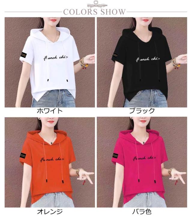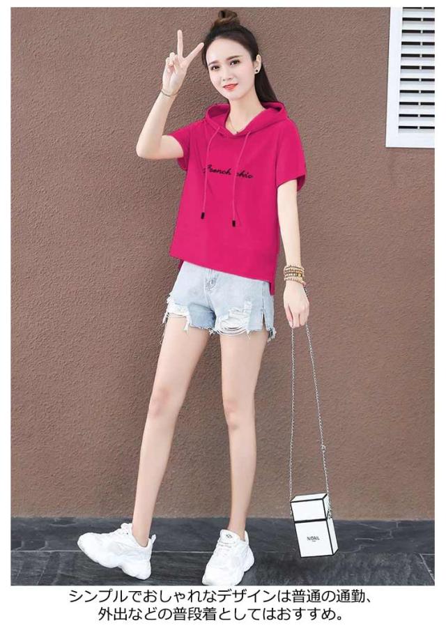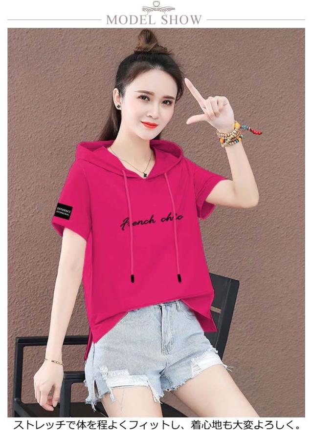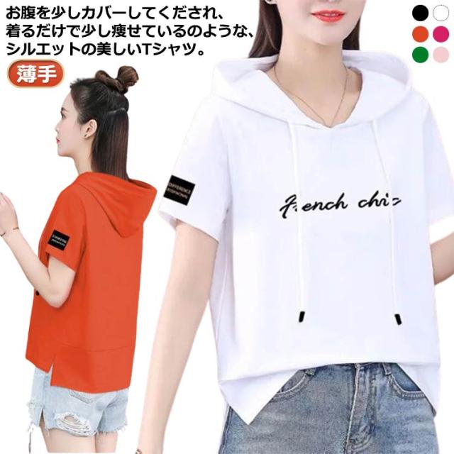 パーカー Tシャツ 無地 フード付きtシャツ フーディー 夏 プリント フード付き 半袖 春 ロゴ tシャツ プルオーバー トップス 薄手 パーカー プルオーバーパーカー 夏 Tシャツ レディース フード カットソー テーシャツ シンプル 大きいサイズ カジュアル