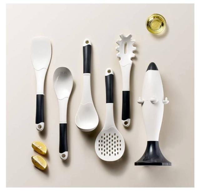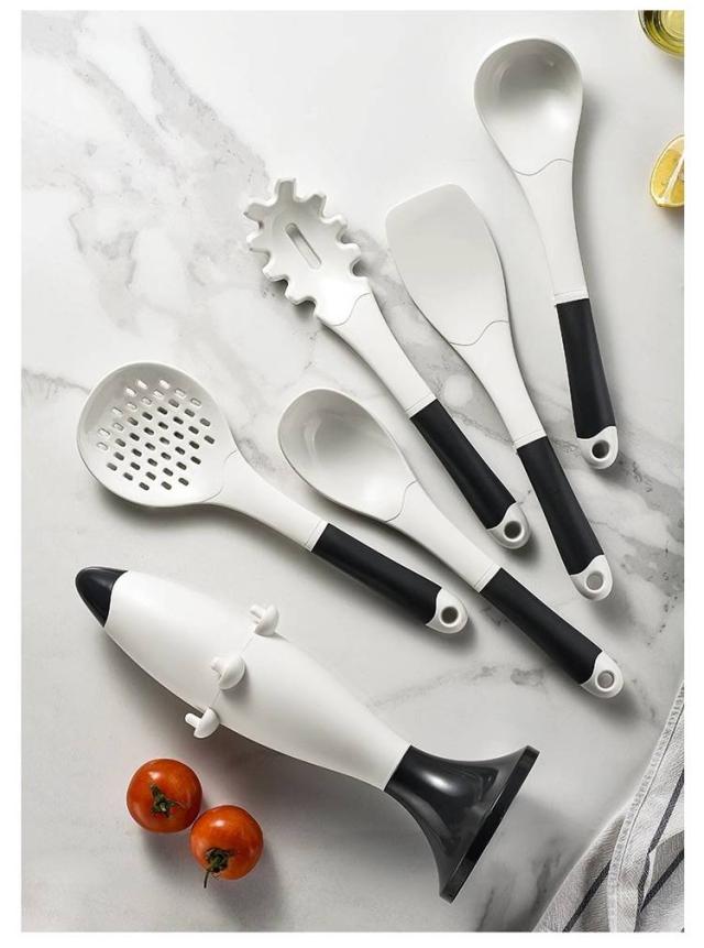 | デザイン性と機能性が兼ね備えたキッチンツール6点セットです。 安全なシリコン製で、柔らかくて鍋などに傷をつけることを心配する必要がありません。 先端はシリコン製なので、安全素材で耐高低温性に優れ、耐久性も備えています。電子レンジ、食器洗い乾燥機などに対応できます。 汚れても水洗い出来ることでお手入れがとても簡単です。 専用の収納スタンドが付属しておりますので、6点セット一気に収納! | |