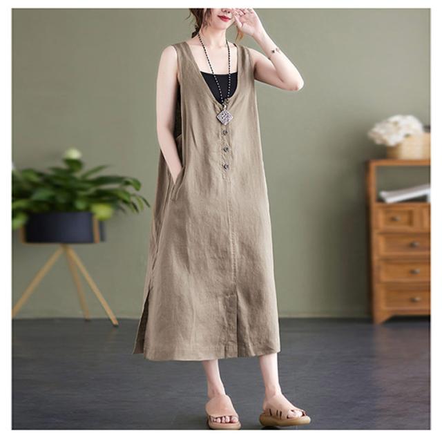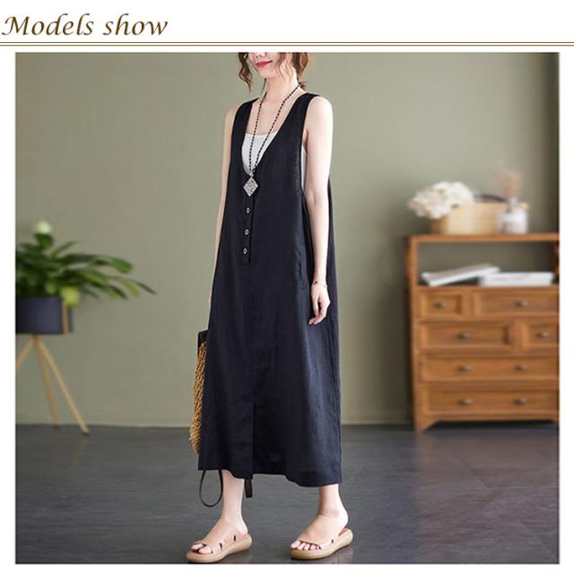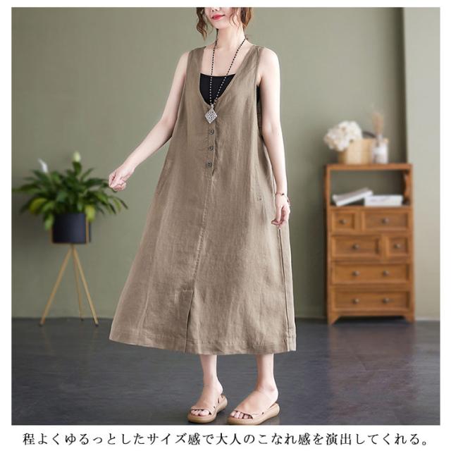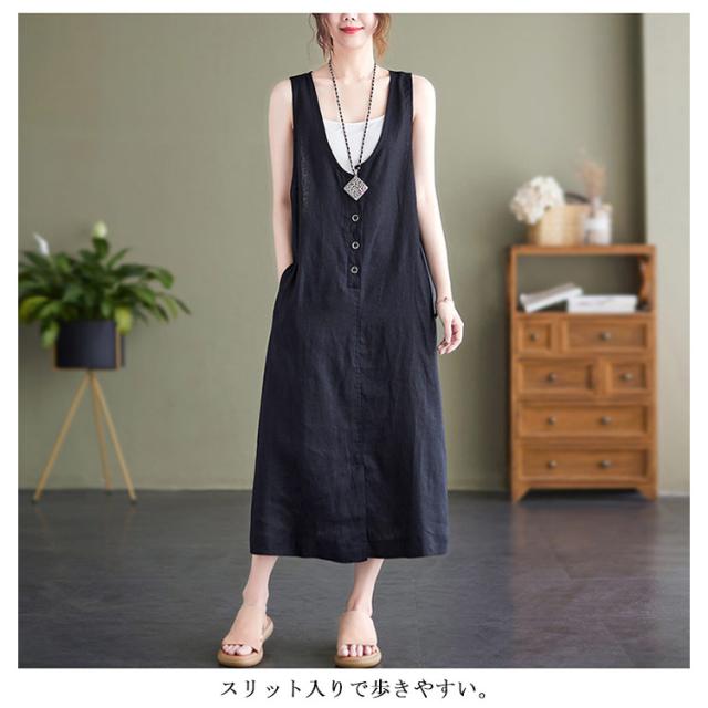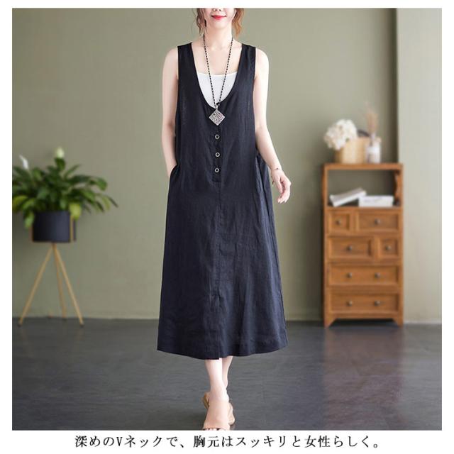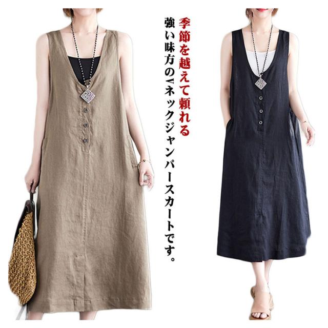カジュアル ジャンスカ オールインワン ジャンパースカート ワンピース サロペット サロペットスカート 体型カバー 大人 春 夏 Vネック ミモレ丈 シンプル 無地 秋 ゆったり 可愛い スリット ポケット付き レディース