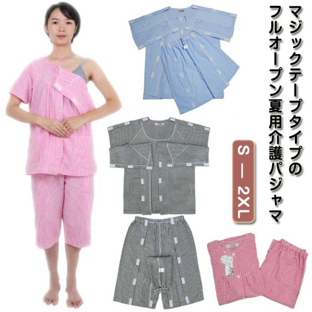 介護用パジャマ パジャマ 介護パジャマ オープン フル 寝たきり 半袖 レディース 介護 介護 メンズ 男性 紳士 オムツ交換 フルオープン 全開 両脇全開 夏用 高齢者 シニア 敬老の日 チェック柄 格子柄