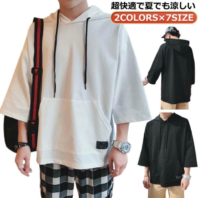 メンズ 春服 薄手 プルオーバー フード付き パーカー 薄手 メンズ シンプル プルオーバーパーカー 半袖 フード付きtシャツ 冷感 半袖パーカー パーカー 夏服 パーカー トップス 大きいサイズ 無地 薄手パーカー 夏 韓国 白 黒 ホワイト 半袖