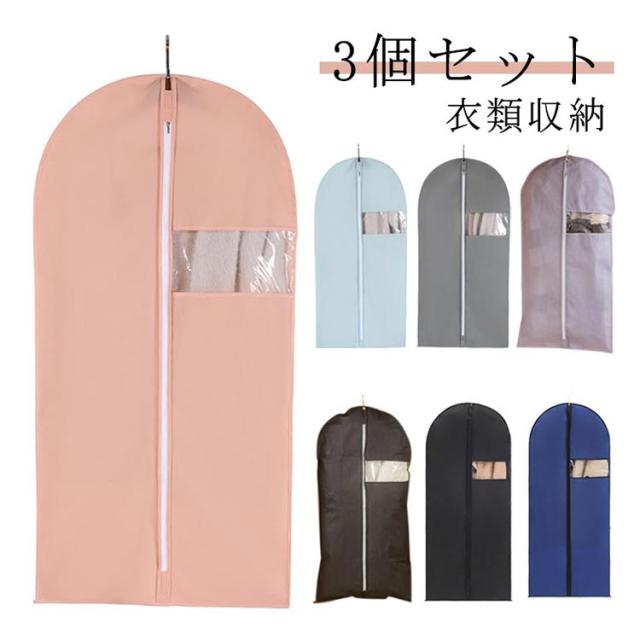 3個セット 衣類カバー コートダストバッグ 衣類ダストカバー 収納 衣類収納袋 洋服ダストバッグ 不織布 服カバー 透明 小窓 カバー ダストカバー 前開き 服ダストカバー 防塵 防湿 服収納 服 カバー スーツカバー 衣類長期保管 洋服カバー