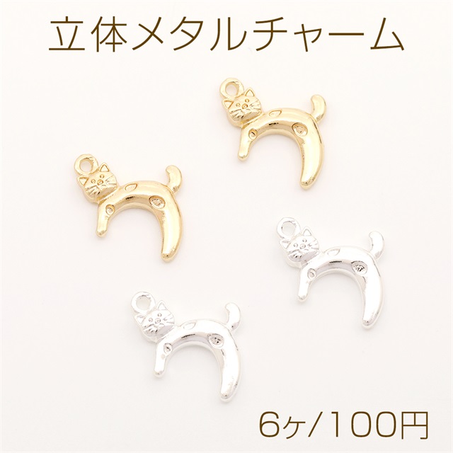 立体メタルチャーム 猫チャーム ねこチャーム キャットチャーム 猫メタルチャーム 1カン付き 約12×17mm(6ヶ)