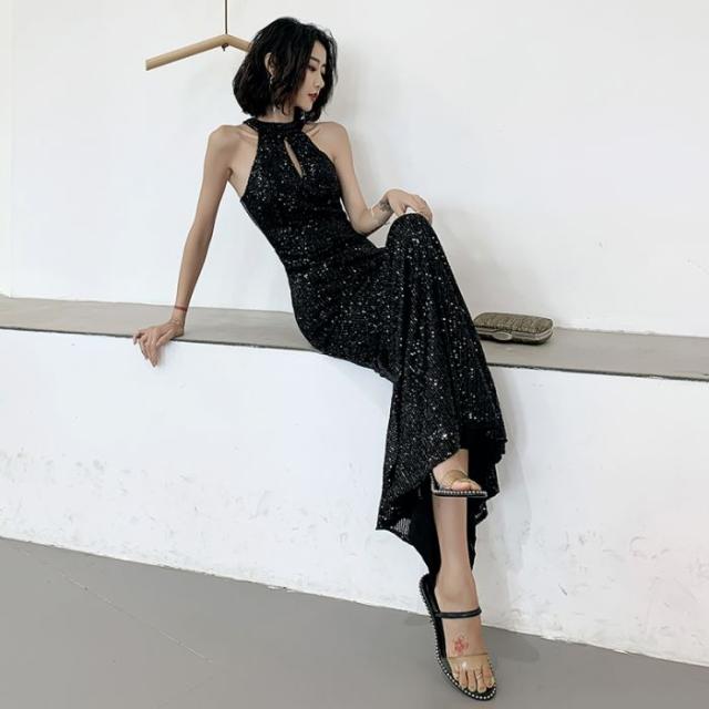 バンケットスパンコールイブニングドレス マーメイドドレス ブラック レディース セクシー ロングドレス パーティー成人式大人気
