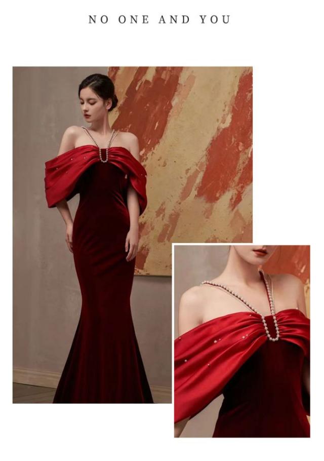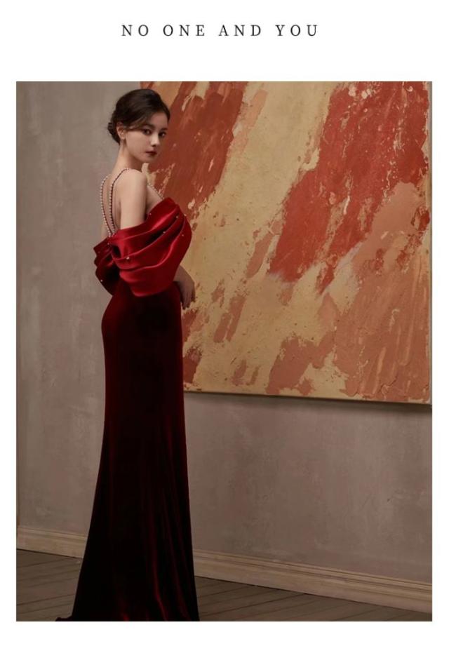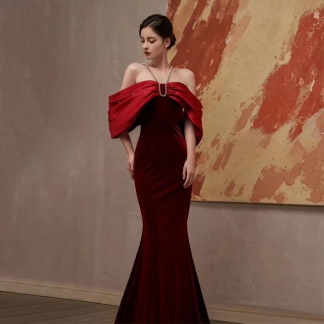 イブニングドレス ワインレッドドレス vネット 豪華ドレス 新作品 忘年会 レディース お姫系 ロングドレス パーティー成人式大人気
