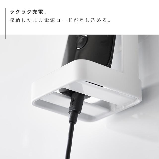 収納したまま電源コードが差し込めるので充電もスムーズ。