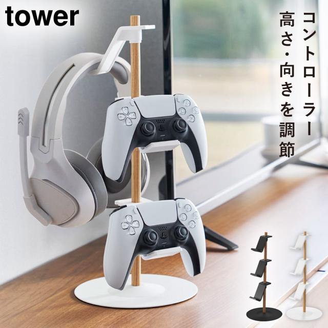 コントローラースタンド ps5 コントローラー収納 ヘッドセット タワー tower 山崎実業 置台が動くゲームコントローラー収納ラック タワー