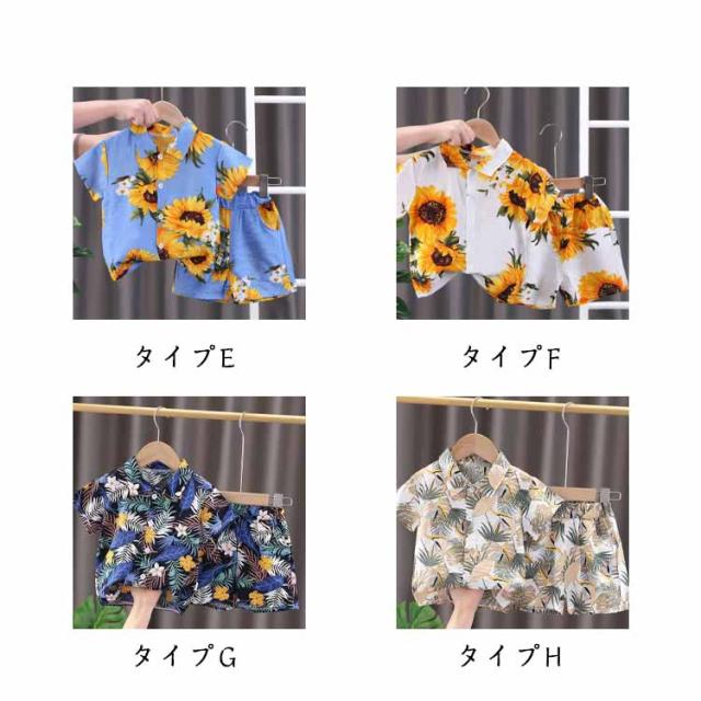 子供服 ハーフパンツ カジュアルシャツ 半パン キッズ服 セットアップ ハワイアン リゾート お洒落 女の子 半袖 小学生 花柄 子供服 男の子 可愛い 上下セット アロハシャツ 海 水着 ビーチウェア 送料無料