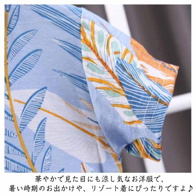 | 涼感のある夏アロハスタイルセットアップ さらりとした滑らかな肌触りは湿度の高い気候でも涼しく快適。 前にはボタンがあって、着脱が便利。 お洒落な花柄の組合はハワイ風で、着るとかっこいくて元気いっぱい!。 華やかで見た目にも涼し気なお洋服で、暑い時期のお出かけや、リゾート着にぴったりですよ♪ | |