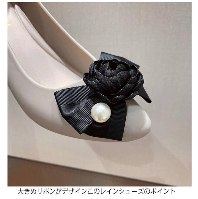 ウェッジソール パンプス 撥水 脚長 リボン レインシューズ レインパンプス ポインテッドトゥ 雨靴 防水 防水 レインシューズ 美脚 滑りにくい 晴雨兼用 アウトドア 通勤 レディース