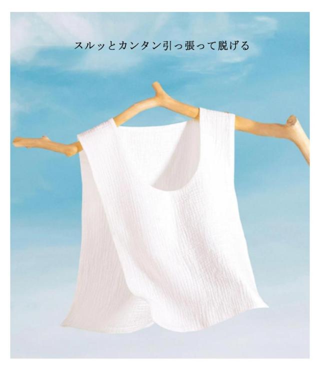 | 3サイズ 大人用/子供用 伝統技術と新しいアイデアで生まれた、ワンランク上の汗取りシャツ。 汗びっしょりの放置は臭いも気になるし不快ですよね… スルッとカンタン引っ張って脱げる 汗をよく吸い、脱ぐときはひっぱるだけ! 服を着たままスルッと脱げる、気になる汗ジミも脱ぐだけでサラッ! | |