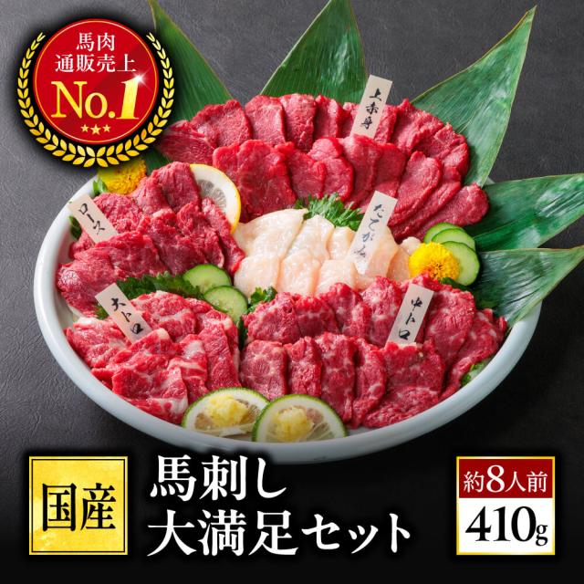 馬刺し 国産 熊本 大満足セット 約8人前 410g お肉 馬肉 馬刺 赤身 霜降り たてがみ ロース 利他フーズ ばさし 老舗 利他フーズ ギフト バレンタイン 甘くないギフト ホワイトデー 卒業祝い 合格祝い