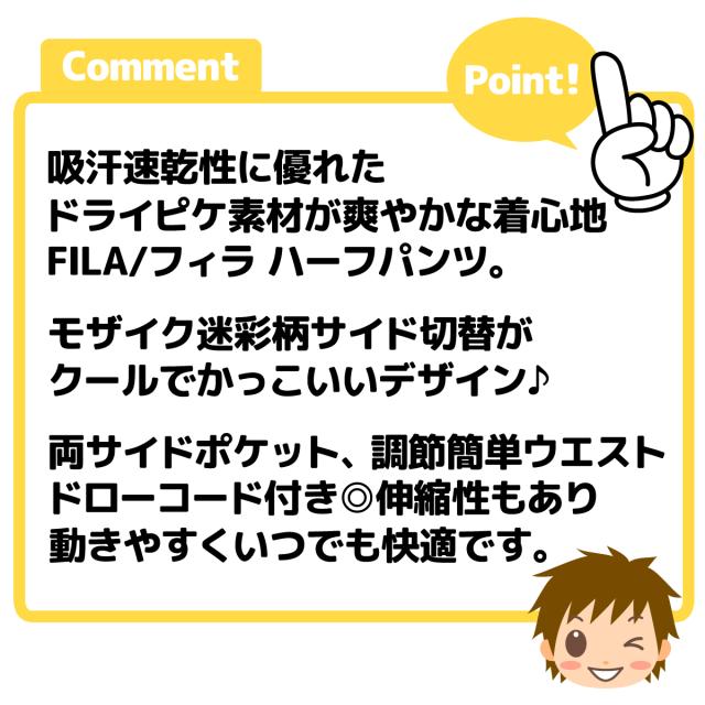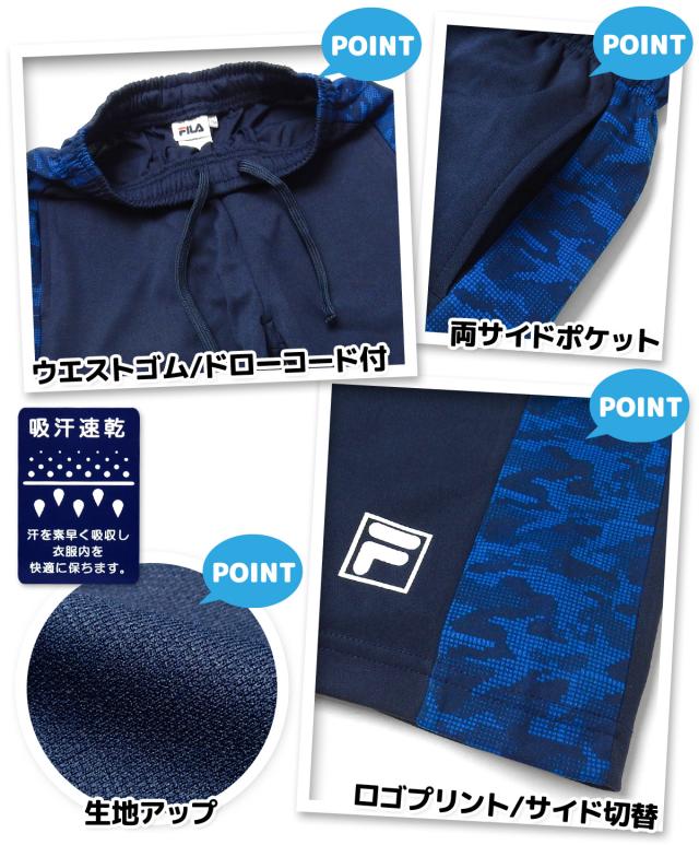 【送料無料】男児 ジュニア 吸汗速乾 ハーフパンツ FILA/フィラ ジャージ ドライピケ モザイク迷彩柄 子供服 男の子 140cm 150cm 160cm iw-1109a-nv【メール便対応】