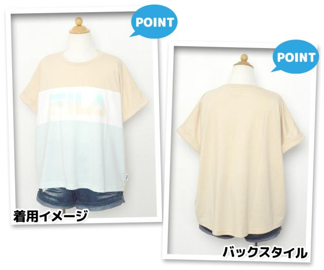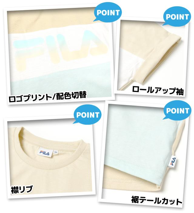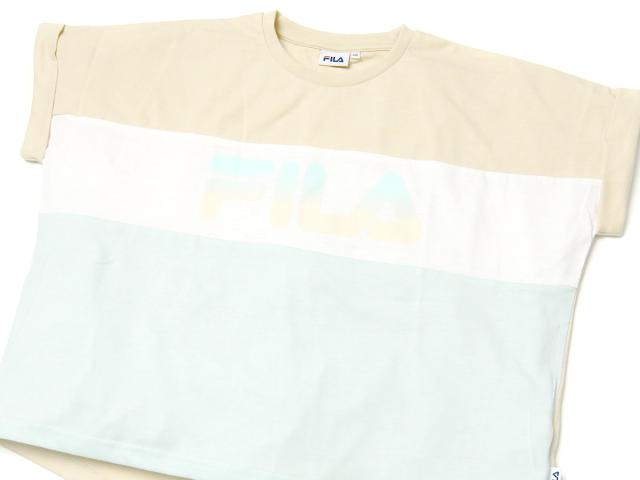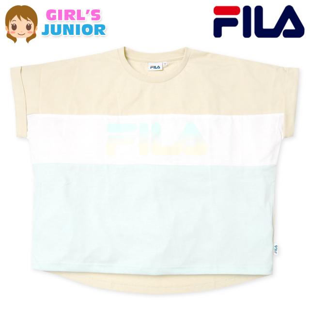 【送料無料】女児 ジュニア 天竺 半袖 Tシャツ FILA/フィラ ゆったりドルマンスリーブ 配色 ロゴ 子供服 女の子 140cm 150cm 160cm iw-1104b-be【メール便対応】