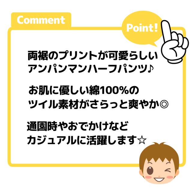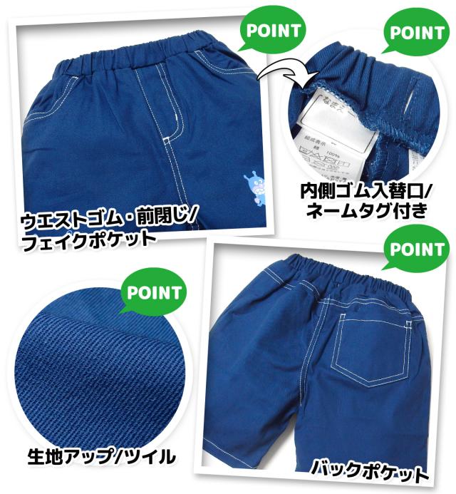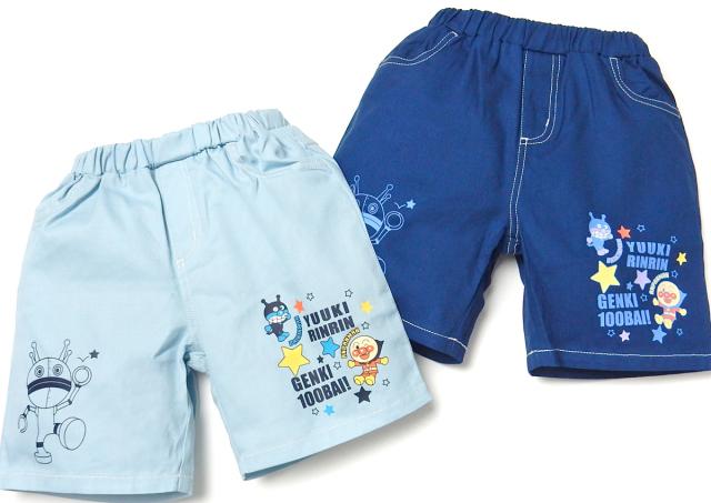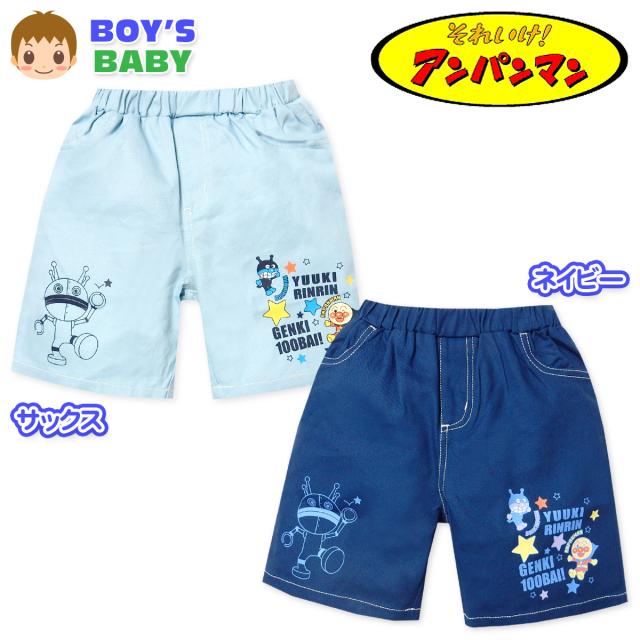 【送料無料】男児 ベビー ツイル ハーフ パンツ アンパンマン 綿100% 両裾プリント ネームタグ ウエストゴム ボトムス ベビー服 男の子 80cm 90cm 95cm iw-1074【メール便対応】