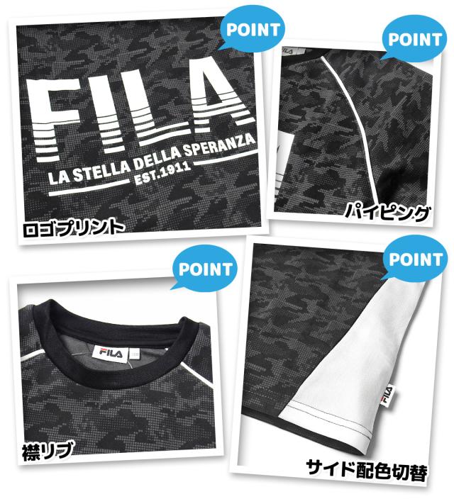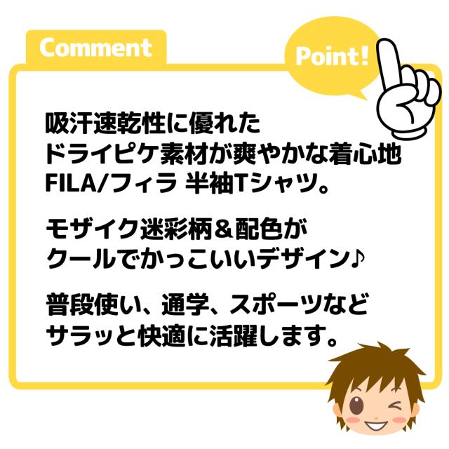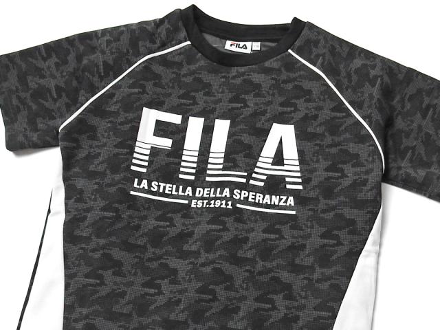 【送料無料】男児 ジュニア 吸汗速乾 半袖 Tシャツ FILA/フィラ ドライピケ モザイク迷彩柄 配色 子供服 男の子 140cm 150cm 160cm iw-1107b-bk【メール便対応】