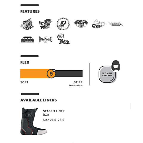 | | 長年にわたり、このブーツは大きな注目を集め、女性ライダーの間で人気を博してきました。ミッドソフトフレックスのこのフリースタイルブーツは、すぐに履ける快適さを求めながらもサポートを求めるライダーに最適です。TeamID LaraのL3レースは、当社の最も先進的で多用途なスピードレースシステムで、卓越したボードコントロールとヒールホールドを提供します。特にグリップ力の高いSkate Flexソールは、信じられないほどのボードフィールを提供します。さらに快適さとパフォーマンスを最大限に高めるために、TeamID LaraにStage 3ライナーとフリースタイルタンを注入しました。Whitelines誌が以前にこのブーツを年間最優秀女性用ブーツに選んだのも不思議ではありません。快適さを身につけて、スタイリッシュに過ごしましょう。 |
